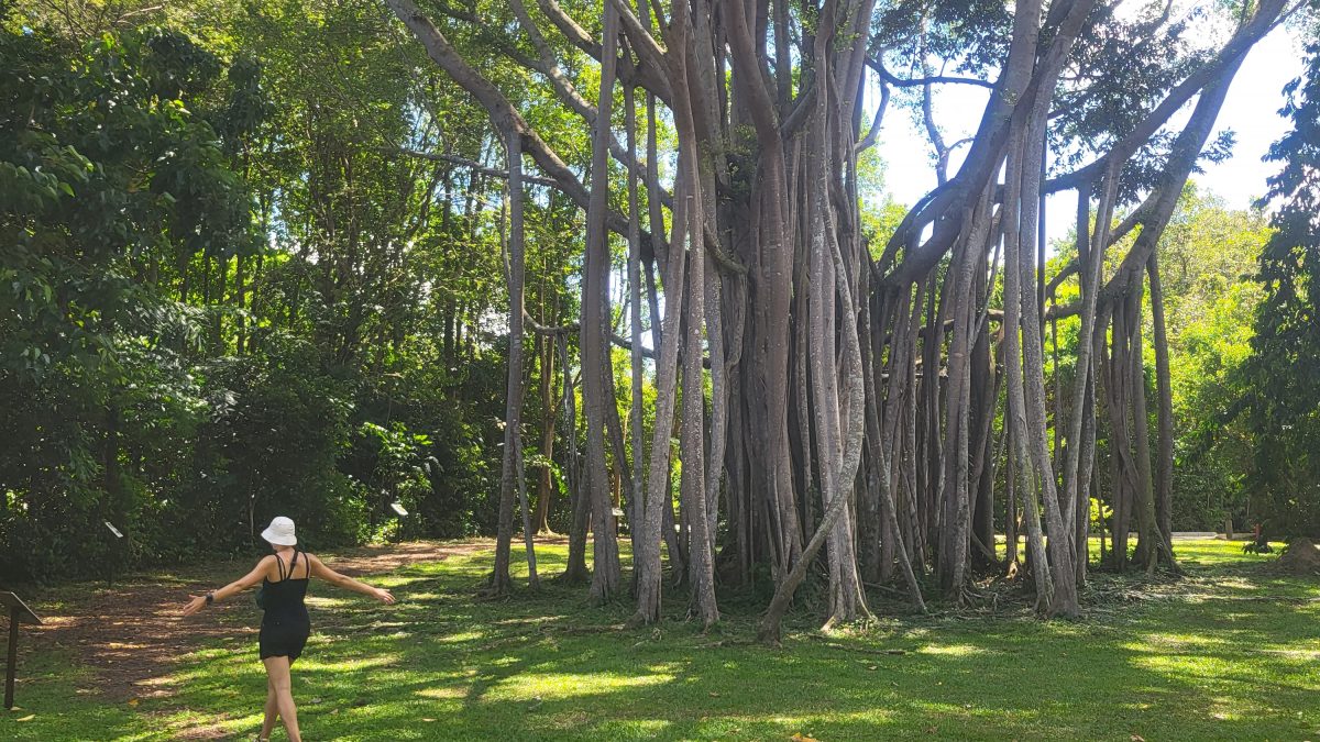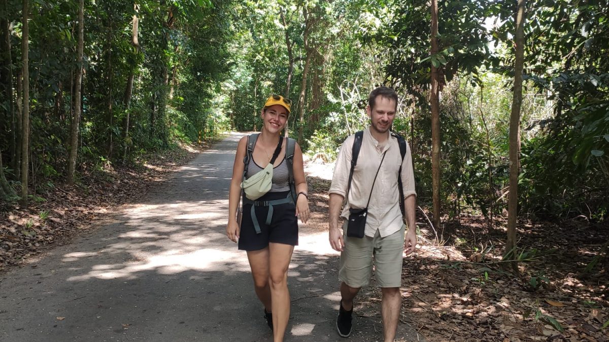 Elise und ich sind jedoch Stadtgesättigt und somit gönnen wir uns einen Tag im Grünen – das gibt es in diesem kleinen Stadtstaat nämlich auch. Also machen wir uns auf den Weg zum Changi Airport, um zur Insel Pulau Ubin zu gelangen. Diese Insel, die einst für die Shrimpzucht und den Granitabbau genutzt wurde, ist heute ein Naherholungsgebiet, das die Biodiversität mit Feuchtgebieten und Urwald fördert. Auf unserem Fußmarsch begegnen wir zahlreichen Bewohnern: Schmetterlingen, Longtail-Makaken, Waranen und ein paar neugierigen Ottern, aber nur sehr wenigen Menschen. Dieser Ausflug in die Natur hat sich wirklich gelohnt und hinterlässt uns beseelt nach unserem Städtemarathon durch Malaysia.