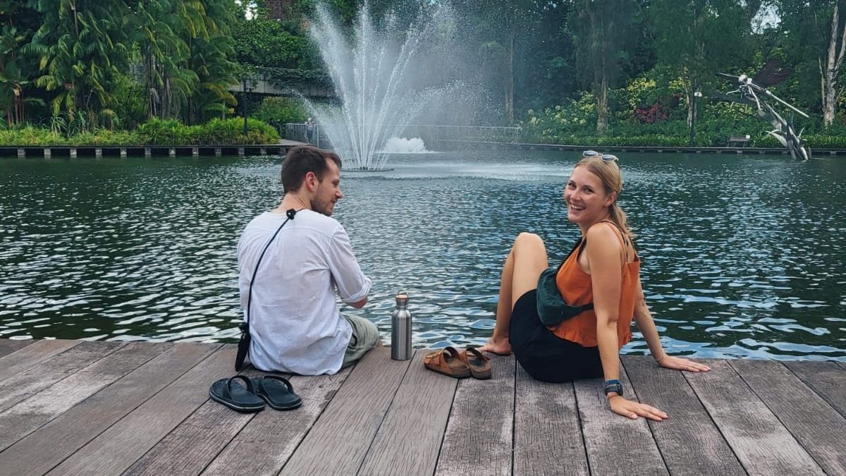 Mit dem Motto “Raus aus Malaysia und rein in die Stadt im Garten: Singapur” starten wir in einen aufregenden Morgen. Geplant ist die Ausreise aus Malaysia mit dem Bus und die Einreise nach Singapur auf demselben Weg. Doch am Busbahnhof in Johor Bahru, der sich als so groß wie ein Flughafen erweist, müssen wir feststellen, dass wir den Bus über die Grenze nach Singapur nicht mehr rechtzeitig erreichen werden, was damit bereits unser zweites Bus-Missgeschick ist: wir haben vor kurzem versehentlich unseren Bus einen Tag zu früh gebucht 😅 – kostete uns Gott sei Dank nur 2€. Glücklicherweise gelingt die Ausreise reibungslos mit den lokalen Bussen vor Ort. In Singapur angekommen, erleben wir dank digitalisierter Verfahren eine schnelle Einreise. Schnell geht es weiter mit dem nächsten Bus und der Metro, bis wir schließlich im Hostel ankommen.