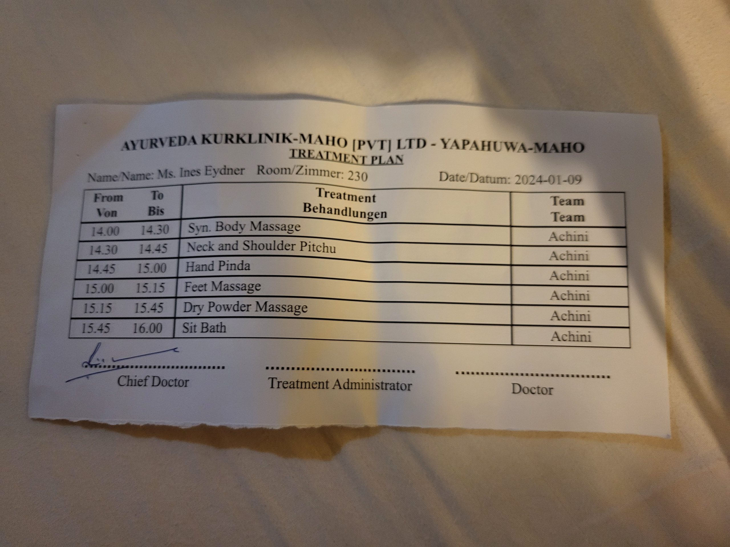 Am Ende ist es jedoch der Mix der es Macht, die Dosha-Bestimmung, die Medizin, das Wetter, die Ruhe und die Behandlungen.
